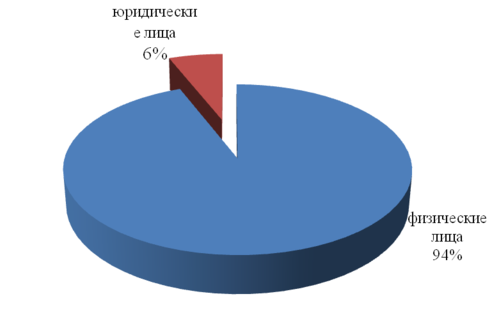 Основными потребителями компании ИП Коваленко Д.В. являются в первую очередь физические лица (94 %), остальные 6 % - юридические лица всех форм хозяйствования имеющие грузовые автомобили и спецтехнику (рисунок 5).