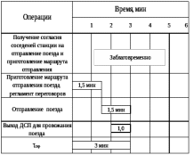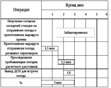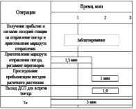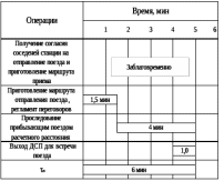 Рисунок 3.9. Технологический график обработки транзитного поезда на пограничную станцию Ленинск