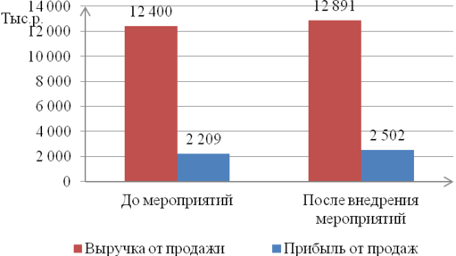 | Показатели | До мероприятий | После внедрения мероприятий | Изменения, тыс.р. | Прирост, % |