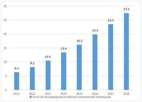 На рисунке 10 представлена структура онлайн-рынка Китая в период с 2011 по 2018 гг. (годы 2016-2018 прогнозные).