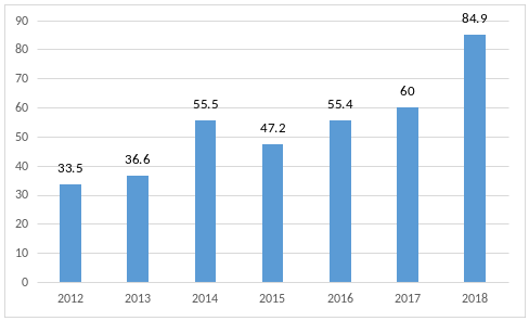 Ресунок 14 - Оборот компании Alibaba(млрд долл)