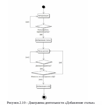На рисунке 2.10 отображается диаграмма деятельности «Добавление статьи».