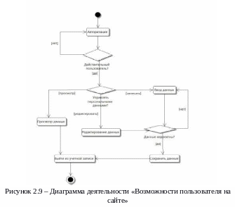 Диаграмма деятельности (рисунок 2.9) отображает возможности пользователя в Личном кабинете.