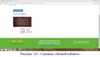 Сделав вышеперечисленные действия, пользователь попадает в Личный кабинет (рисунок 3.9).