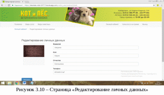 На ней отображаются персональные данные, которые можно редактировать с помощью нажатия кнопки «Редактировать» (рисунок 3.10).