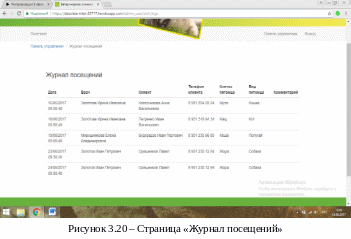 В панели управления расположены кнопки для навигации Администратора. Первая кнопка «Журнал посещений» (рисунок 3.20).