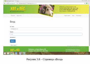 Если пользователь уже сотрудничает с клиникой и у него есть личный кабинет, он может войти в него с помощью пункта в ленте «Вход» (рисунок 3.8).