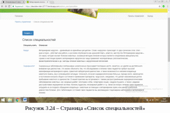 В ней Администратор может добавить новую специальность врача, который будет работать в клинике, либо откорректировать информацию по уже созданной специальности.