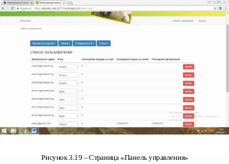 При входе Администратора на сайта он попадает на страницу «Панель управления» (рисунок 3.19).