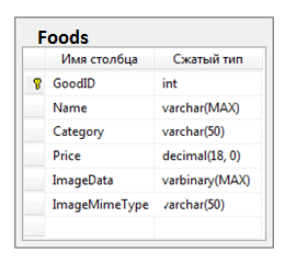 В данной работе присутствует единственная таблица с названием Foods. Она содержит в себе информацию о товарах. Идентификатором этой таблицы является поле FoodID, это видно на таблице 2.1.