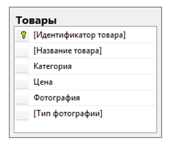 Таким образом в данной БД, созданной для интернет-магазина «Оптово-розничной торговли ЁЁ», находится одна таблица. Этого достаточно для хранения информации о товарах, а хранение информации о данных администратора и отправка заказа сразу же будет обрабатываться в самом приложении и на сервере.
