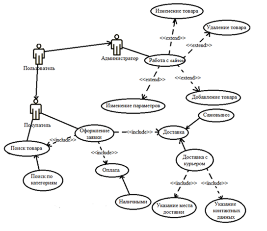 Контекстная диаграмма вариантов использования деятельности интернет-магазина «Оптово-розничной торговли ЁЁ» представлена на рисунке 2.1.
