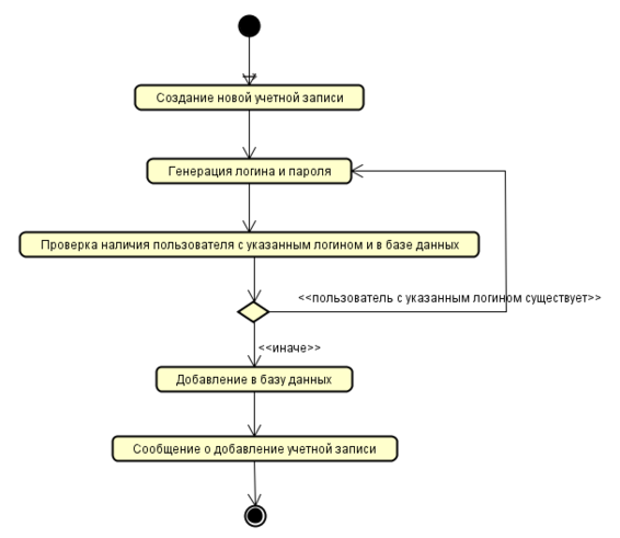 Рисунок 2.15 – Диаграмма деятельности «Создание учетной записи »