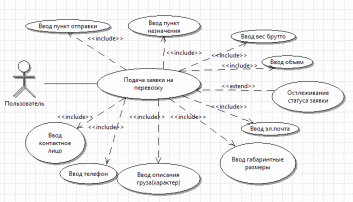 На этой диаграмме подробно описан процесс того, как актер «Пользователь» подает заявку на перевозку.