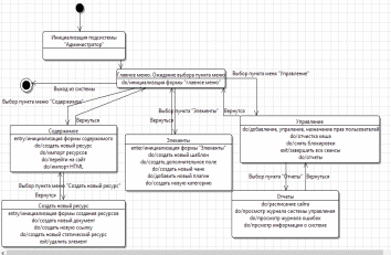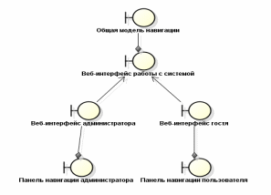 Диаграмма представляет собой прототип структуры пользовательского интерфейса, а также интерфейс взаимодействия с системой администратора