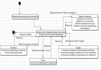 На рисунке 3.10 изображена диаграмма последовательности для процесса «Подача заявки на перевозку». Пользователь выбирает пункт меню «Заполнить заявку» далее он переходит на форму «Заполнение заявки». На этой форме пользователь заполняет все необходимые пункты такие как «Ввод пункта отправки и назначения», «Ввод характеристик груза», «Ввод контактной информации», далее эти пункты проверяются на возможность их существования. Далее пользователь вводит код подтверждения, и система проверяет на правильность кода. Если он введен верно, то форма отправляется на почту администратора. Если нет, то система просит заново ввести код. После того как форма пришла на почту, администратор или оператор свяжется с потенциальным заказчиком для уточнения заявки.