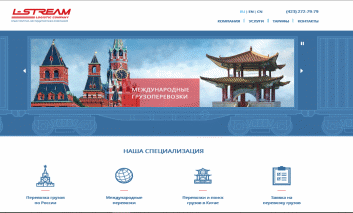 «L-STREAM» название компании, при нажатии на этот SVG файл происходит переход на главную страницу сайта, на которой находится общая информация об компании (специализация, преимущества, контактная информация);