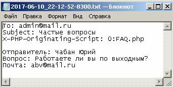 На рисунке 7.17 представлен пример письма, которое отправляется на почту поликлиники, содержащий форму вопроса.