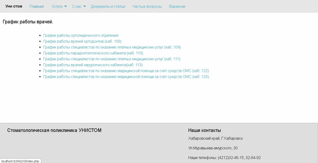 “График работы” – страница с расписанием работы всех стоматологов поликлиники;