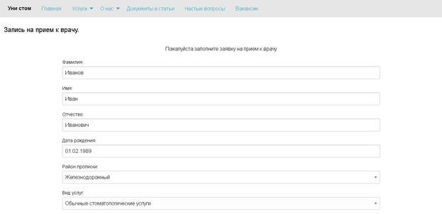 Страница записи на прием представлена на рисунке 7.4.