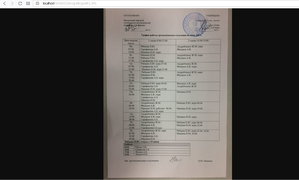 Перейдя во вкладку графика работы, пользователь выбирает нужную ему информацию об интересующем его отделении (рисунок 7.8).
