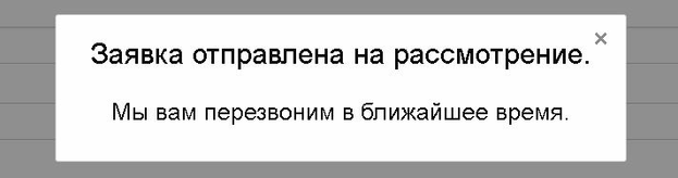 Рисунок 7.5 – Окно с подтверждением отправки заявки