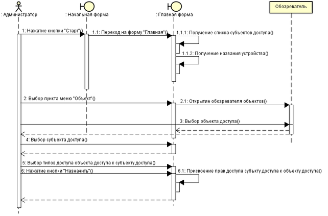 Рисунок 3.7 – Диаграмма последовательности “Ручная настройка прав доступа субъекту доступа к объекту доступа”