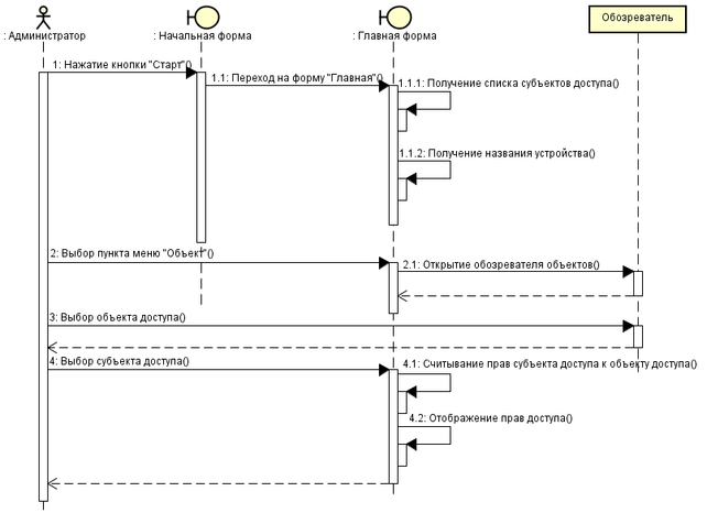 Рисунок 3.8 – Диаграмма последовательности “Считывание прав доступа субъекта доступа к объекту доступа”