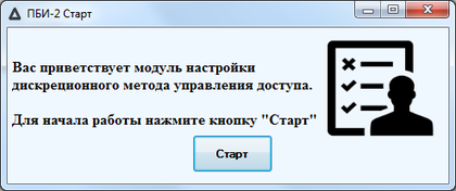 Стартовое окно содержит в себе приветственную информацию и предлагает осуществить запуск программы. Для этого пользователю нужно нажать кнопку “Старт”.