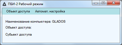 В верхней части окна представлено главное меню, первоначальное имеющие следующие вкладки: “Объект доступа”, “Автомат. настройка”. Данные пункты меню имеют следующие функции: