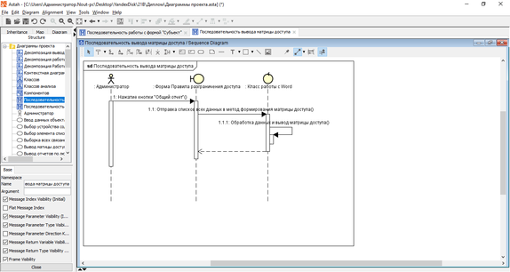 Первая диаграмма изображена на рисунке 2.7. Данная диаграмма описывает взаимодействие элементов приложения при выводе полной матрицы разграничения доступа.