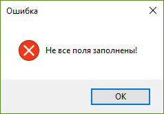 Рисунок 4.4 Сообщение при не полном заполнении