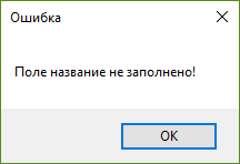 При нахождении пустого поля отображается сообщение об ошибке, которое изображено на рисунке 4.13, отображающее название незаполненного поля.