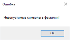 При вводе некорректных значений в поля фамилии имени или отчества будет выведено сообщение о некорректности введенных данных (рисунок 4.14).