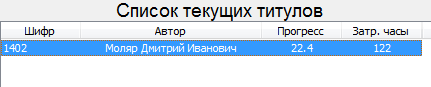 При переходе на вкладку «Авторство» начальник группы получает информацию об авторах титулов, числящихся в его группе. Ему предоставляется список титулов, авторами которых являются инженеры его группы, прогресс по выполнению каждого из титулов, а также время, затраченное на каждый из них (рисунок 2.7). Данная информация хранится в таблице OBJECTS.