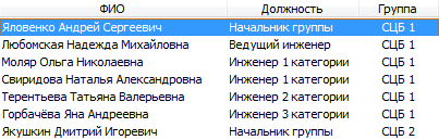 Рисунок 2.12 – Список инженеров, выполняющих работу
