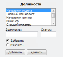 Во вкладке «Настройки» начальнику отдела предоставлена возможность по изменению и добавлению записей в следующие списки: