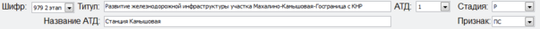 Во вкладке «Перечень работ» осуществляется выбор титула, по которому необходимо вывести на экран список работ, выбор стадии, номера АТД и признака (рисунок 2.8).