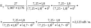 Проследим, как изменится напряженность электрического поля контактной сети (ПБСМ-70+МФ-100) при подвесе УП (А-185) и ЭП (А-185). Расчет производится для однопутного участка. Расчет напряженности EУ производится на уровне головы человека, стоящего на земле (у=1,8 м). Расчетная схема для контактной сети с УП представлена на рисунке 6.1.