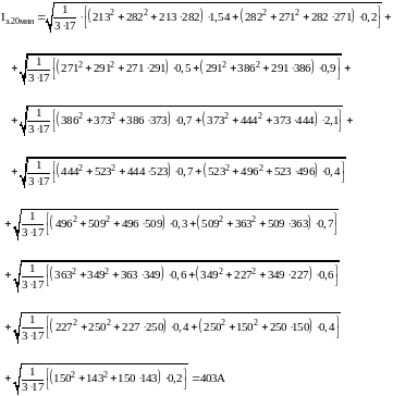 Определим эффективные 20 и 3х минутный токи фидера тяговой подстанции Икура, питающего четный путь, по формуле (2.10) и по результатам таблицы Б1 (Приложение Б).