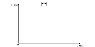 На графике: по горизонтали – t, мин – время следования поездов по участку; L, км – длина участка; J, мин – межпоездной интервал.
