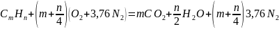 Реакция горения любого углеводорода с воздухом представлена уравнением [8]:
