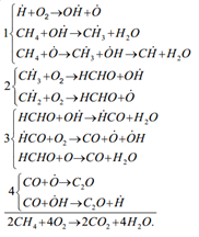 Схемой стадийного горения метана представляет собой набор следующих реакций [8:]