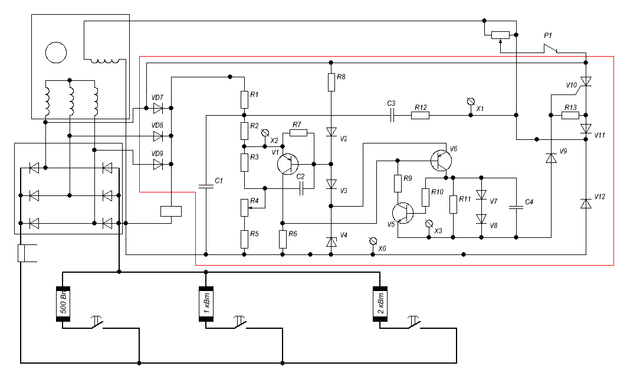 Диод V2, включенный в цепь питающего делителя последовательно с диодом V3, позволяет предотвратить разряд сглаживающего конденсатора С1 через резистор R8.