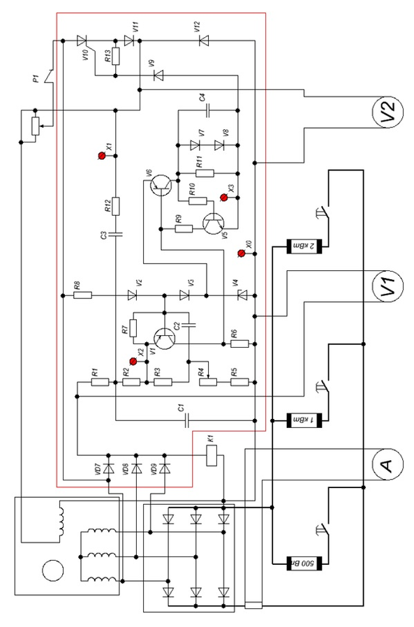 Диод V2, включенный в цепь питающего делителя последовательно с диодом V3, позволяет предотвратить разряд сглаживающего конденсатора С1 через резистор R8.