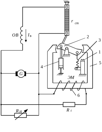 увеличивается, ток в обмотке возбуждения генератора падает. Поворот якоря происходит до тех пор, пока не наступит новое равновесие моментов. При уменьшении напряжения генератора происходит обратный процесс.