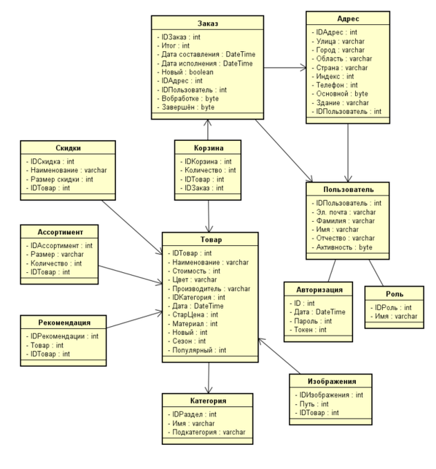 | IDТовар | int | Уникальный номер, идентифицирующий товар |