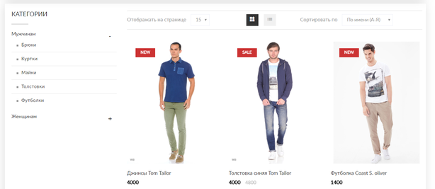 Каталог представляет собой страницу сайта на которой представлены все товары интернет-магазина. Существует два варианта просмотра страницы каталога, когда товары отображаются списком или плиткой. Кроме того, существует четыре варианта сортировки товаров: