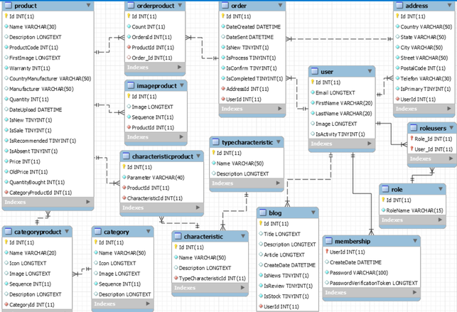 На рисунке 3.1 показана диаграмма EER созданная в MySQL Workbench, на основе реальной базы данных находящаяся на MySQL Server.