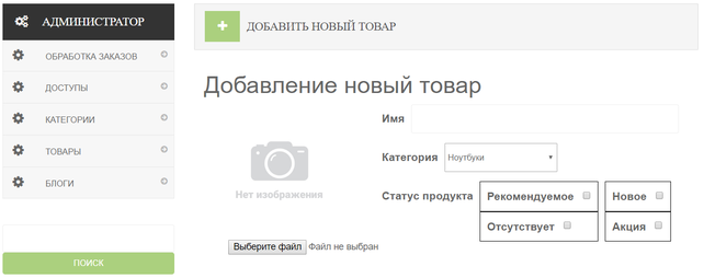 На рисунке 4.11 показана раздел управления товарами. В этом разделе администратор добавляет новый товар, а также редактирует уже имеющиеся товары.
